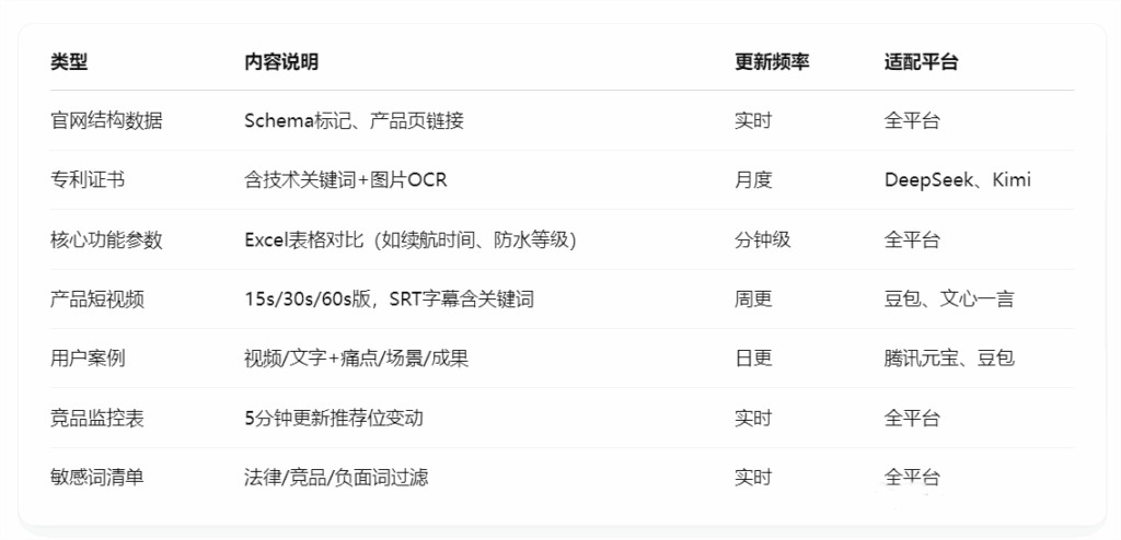 • 以产品为核心持续挖掘新角度:围绕功能、场景、行业趋势、用户问题持续生产内容,保持“模型兴趣度”
