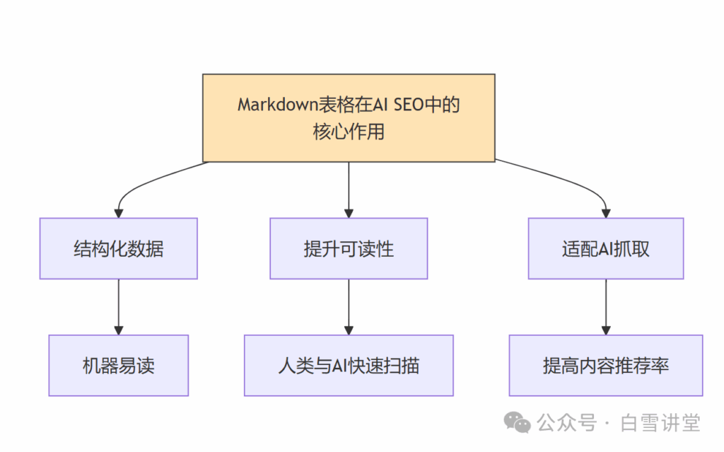 • AI通过语义理解提取内容,偏好问答式、参数对比表、步骤拆解等结构化形式。