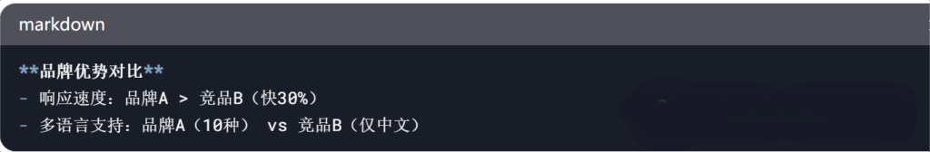 • 进阶层:强化信息权重(如关键参数置顶、技术对比表格嵌入);