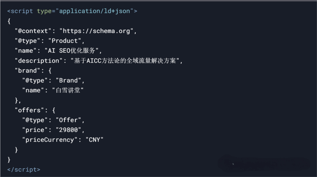 - 内容分类:使用Schema.org类型库定义页面属性(产品页→Product,文章页→Article)